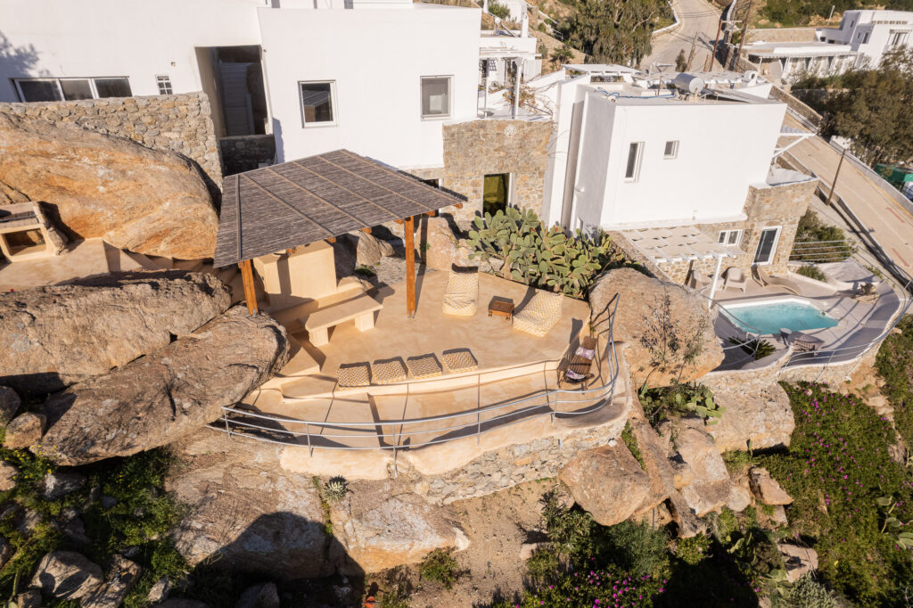 These well equipped upper-market rentals capture the essence of the MYKONOS VIBE of leisure, pleasure and rejuvenation, set in a beautiful south facing rocky backdrop and lush indigenous garden surrounds, at a comfortable distance from beach activity, but only just a five minute walk to the beach.